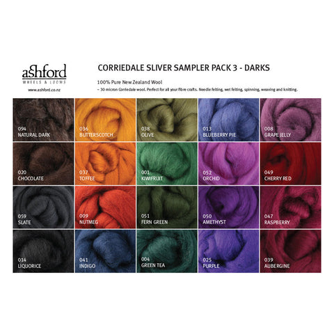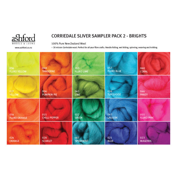 Perfect for playing with your board, Ashford's Corriedale Sampler Packs - Lights, Brights or Darks, 750 gms/20 colours.