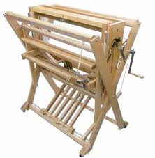 Specs - 600 heddles, 32" w x 35" d x 36.5" h when open, 84 lbs. Optional accessories, bench, sectional warp beam, compact double back beam, inserted eye or Texsolv heddles.